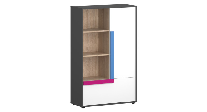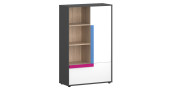 Дитяча Алекс виконується в кольорах: корпус - графіт; фасад - білий дуб; вставки, полички,